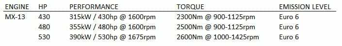 The Euro 6 PACCAR MX engine uses ultra-modern common rail technology, a turbo with variable geometry and advanced controls for maximum efficiency. In order to comply with the strict Euro 6 emissions requirements, it features exhaust gas re-circulation, together with SCR technology and an active soot filter.