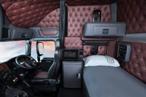Instantly recognisable with its streamlined, purposeful contours, the Kenworth DNA is unmistakable. Exterior style enhancements combine form with operational benefits: the new aerodynamic roof and side fairings reduce drag; the new wheel arch design better protects the engine bay from road spray; and the new stainless steel grille supports optimised engine cooling. The K220 is available with new LED headlamps with integrated indicators and daytime running lights that can be paired with chrome headlamp surrounds to give the K220 real presence. As you’ve come to expect from Kenworth, behind the wheel, you’ll find a level of comfort and class more in keeping with a luxury car. Spacious, and quieter than ever, the redesigned interior features more legroom and a greater range of seat movement, to help every driver find their perfect driving position. With the new roofline, there’s more headspace too. Overhead storage is now triple the size, and the new climate control system delivers 61% more airflow. 2.3m and 2.8m sleeper cabs offer our greatest ever range of optional sleeper storage and bunk options, as well as a 240V inverter, and other personal touches that make this the ultimate home away from home.